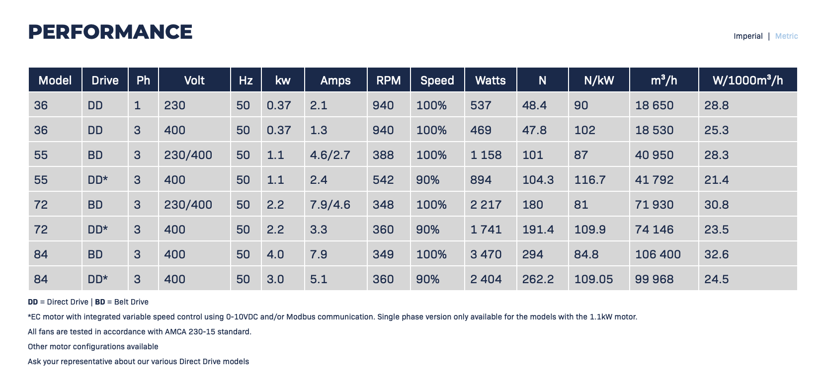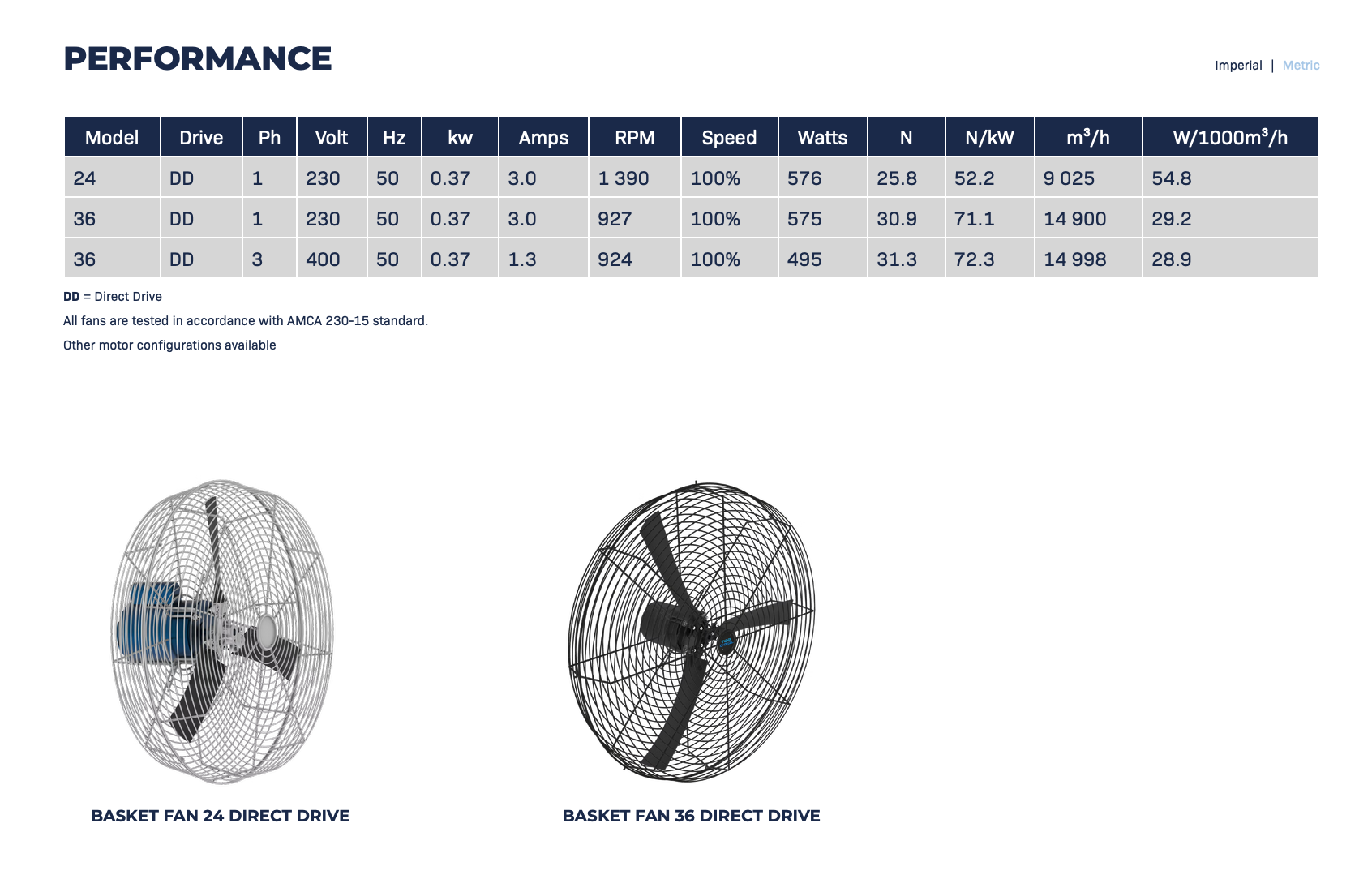 Reduced energy cost when compared to low efficiency panel and basket fans.