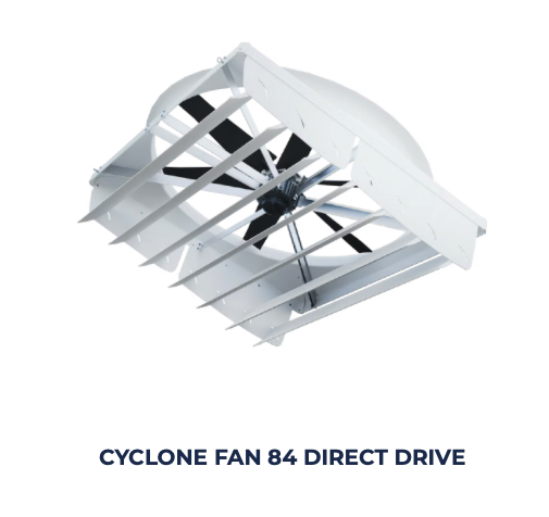 High velocity air pattern transfers the electrical energy from the motor into a concentrated powerful air stream. Creating optimum cow cooling, insect control, drying of the bedding under the cow and improved employee comfort.